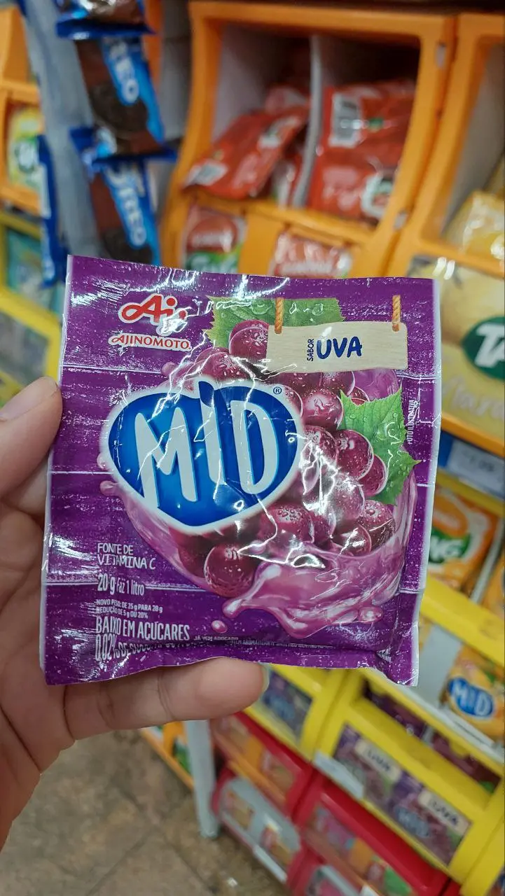 A embalagem do suco em pó Mid, da Ajinomoto, está 20% menor. O peso diminuiu de 25g para 20g.