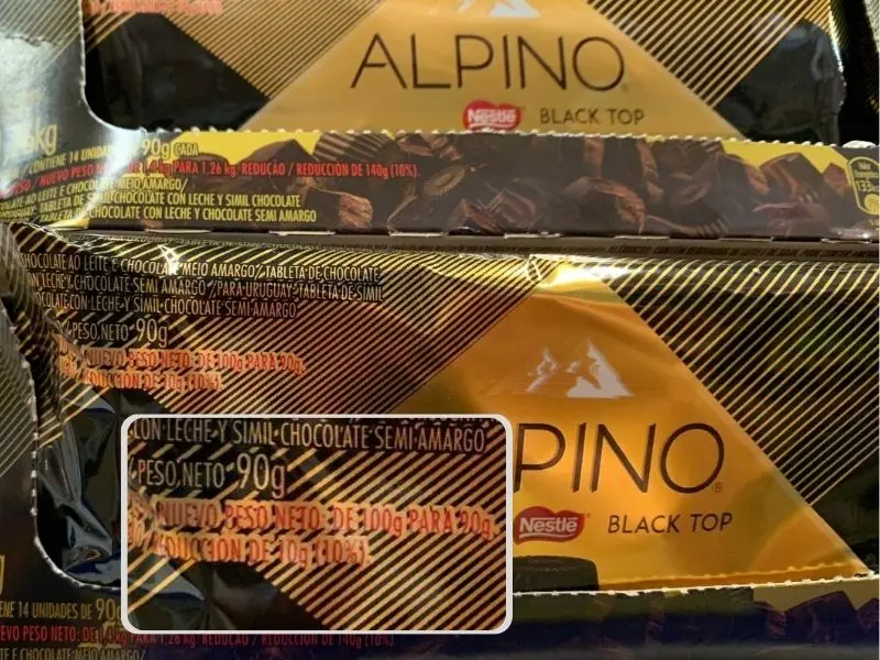 No caso de um achocolatado em pó, antes comercializado com 400 gramas, por exemplo, a diminuição foi de 30 gramas e porção utilizada para o preparo de um copo de 200ml de leite indicada pelo fabricante é de 20 gramas, ou seja, a redução foi de pouco mais de um copo.