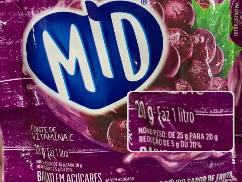 "Isso levou a um aumento na sua concentração para proporcionar ainda mais praticidade na diluição. O peso do produto passou de 25 a 20 gramas, porém com o mesmo rendimento: 1 sachê de Mid de 20g é suficiente para preparar 1L de refresco. A informação sobre a redução no peso esteve presente na embalagem do produto no tempo exigido pelas normas brasileiras: 3 meses, e não houve impacto no sabor e no rendimento dos refrescos. Em relação ao valor do produto, se manteve o mesmo, dado que este continua a ser entregue com o mesmo rendimento de antes. Vale ressaltar, a Ajinomoto do Brasil mantém com seus consumidores uma relação de transparência, comunicando claramente todas as mudanças acerca dos produtos".