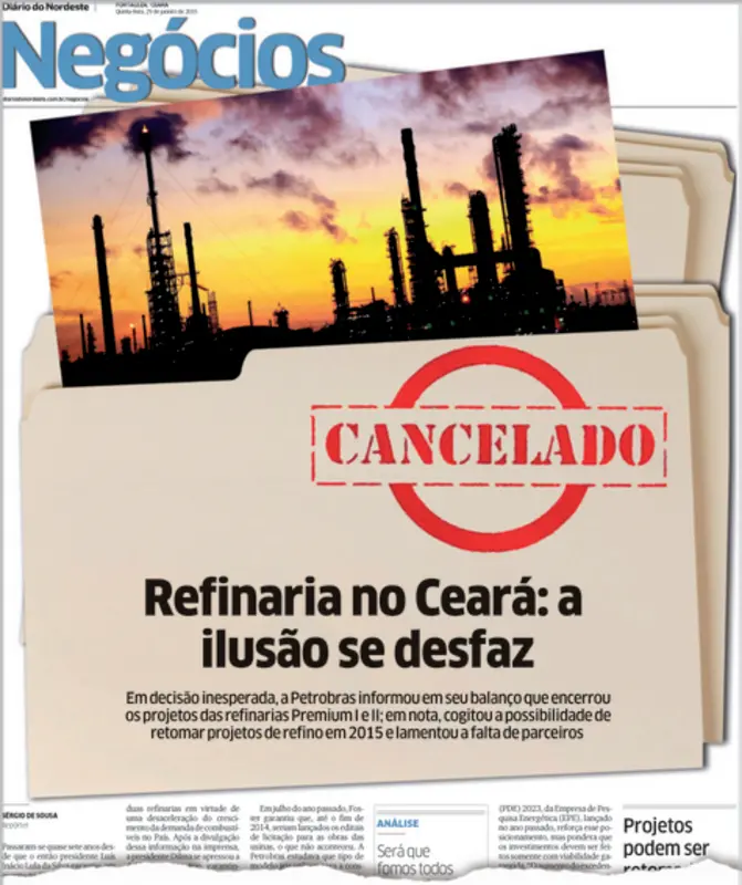 Completou-se um ano, ontem, que a Petrobras encerrou o projeto das refinarias Premium I, no Maranhão, e II, no Ceará, desfazendo um sonho de décadas dos cearenses e um planejamento de oito anos por parte do governo. Ainda assim, após tentativas de reverter a decisão, até hoje não se sabe ao certo quanto foi investido pelo Estado para viabilizar o empreendimento e, muito menos, perspectivas de ressarcimento em um futuro próximo.