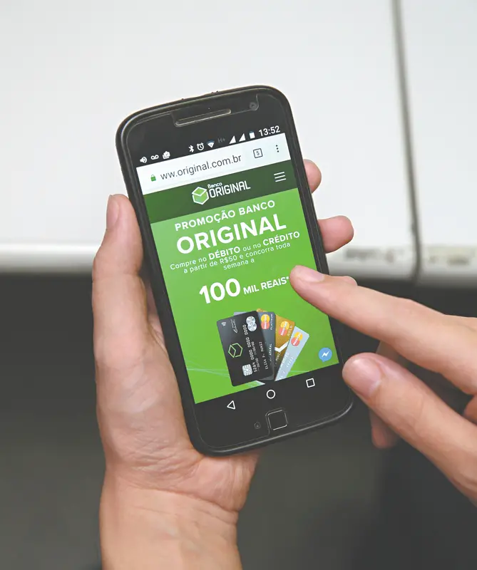 Mais de 80% das transações no Banco Original são realizadas atualmente pelo celular. Por isso, investimos no desenvolvimento de tecnologias de interação pelas redes sociais, como o SAC pelo Messenger, do Facebook, e a possibilidade de consultar saldo e extrato pelo Instagram.