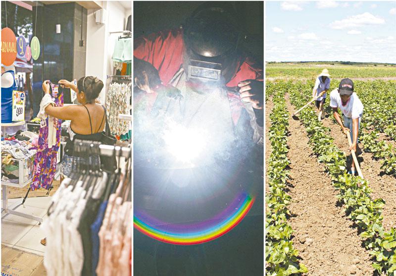 Legenda: O setor de serviços, sobretudo o comércio, recuou 5,21%. A indústria caiu 8,35%. Já a agropecuária avançou 8,91%