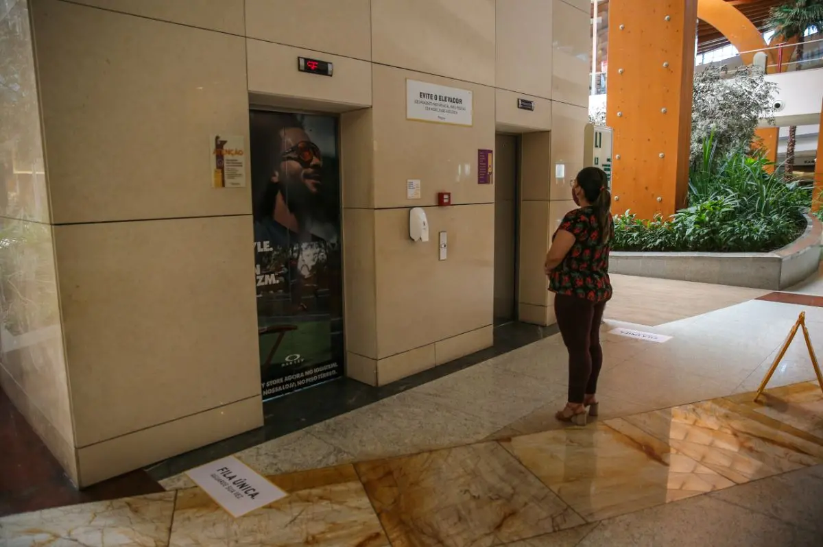 Em relação aos acessos dos espaços, haverá controle do uso de elevadores e, indicação de distanciamento em escadas rolantes (1 pessoa a cada 3 degraus). A praça de alimentação seguirá com as atividades interrompidas.