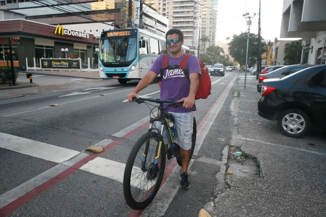 Há seis meses atuando nas ruas de Fortaleza como entregador, André Frota, 29, usa cerca de 16 horas das 24 que tem em um dia para o trabalho. De bicicleta, a rotina começa às 10h e segue, diariamente, até as 2h ou 3h da madrugada. Por semana, o ciclista converte o suor da sua pedalada em até R$ 700, quando consegue fazer R$ 100 por dia.