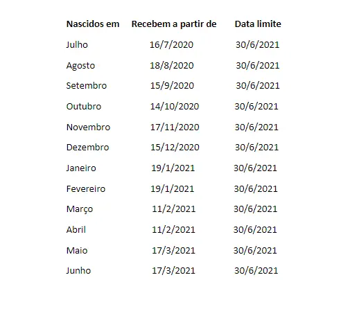 Quem nasceu de julho a dezembro ou tem número final de inscrição de 0 a 4 já teve o valor liberado no ano passado. Quem nasceu de janeiro a junho ou tem final da inscrição entre 5 e 9 terá o valor liberado neste ano.