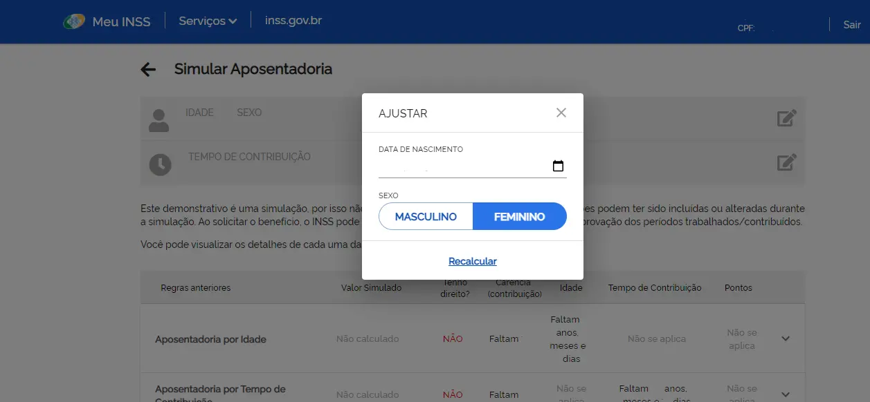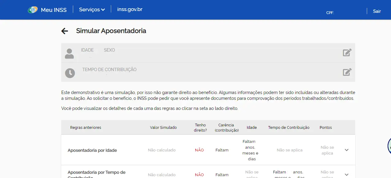 Pela simulação, o beneficiário consegue visualizar todas as regras em que se enquadra e em qual delas tem direito à aposentadoria ou não. O sistema indica automaticamente qual a opção mais vantajosa para o beneficiário.