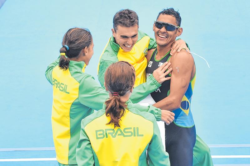 Equipe, que tem os cearenses Vittoria Lopes e Manoel Messias, completa percurso em 1h20min37 e sobe no local mais alto do pódio em Lima, no Peru. Quem também levou ouro ontem foi o canoísta Isaquias Queiroz