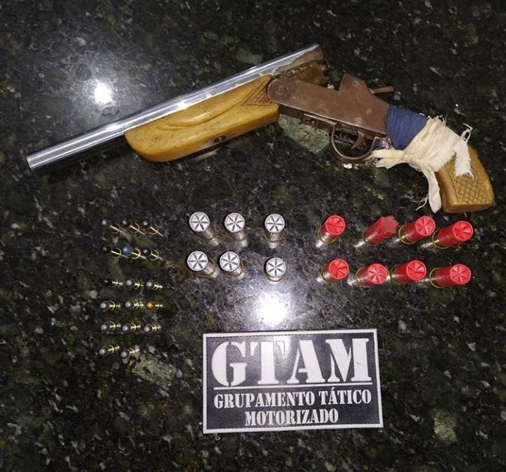 Uma arma artesanal foi apreendida em uma casa na noite de domingo (24)