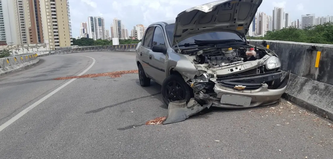 Frente do veículo ficou destruída. Acidente ocorreu no viaduto da avenida Antônio Sales, sobre a Engenheiro Santana Júnior
