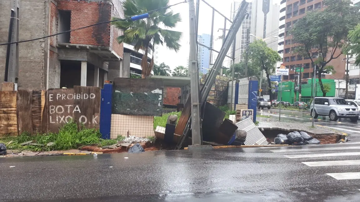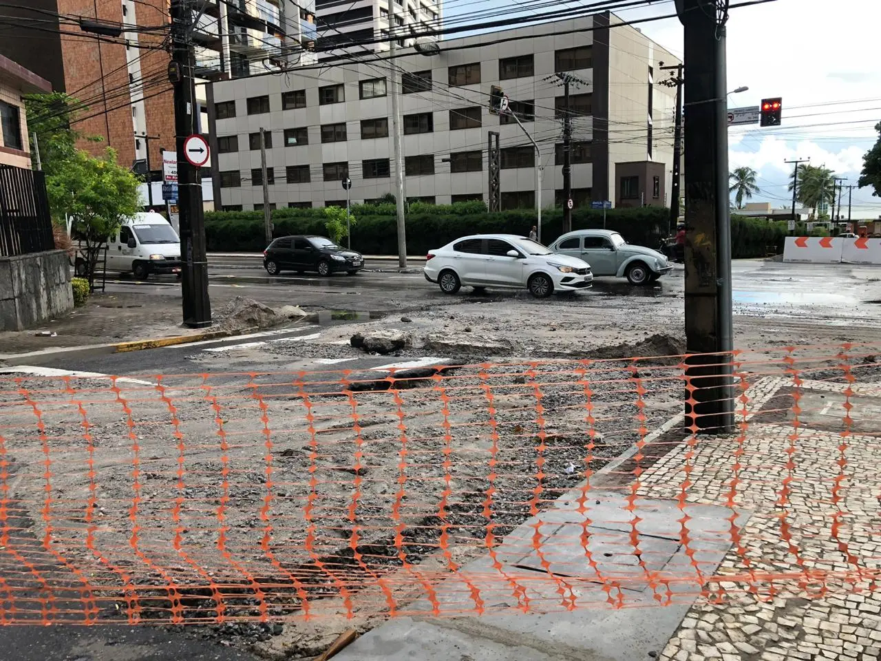 O buraco que atravessou todo o cruzamento com a Avenida Abolição foi coberto no início da tarde de quarta-feira (13)