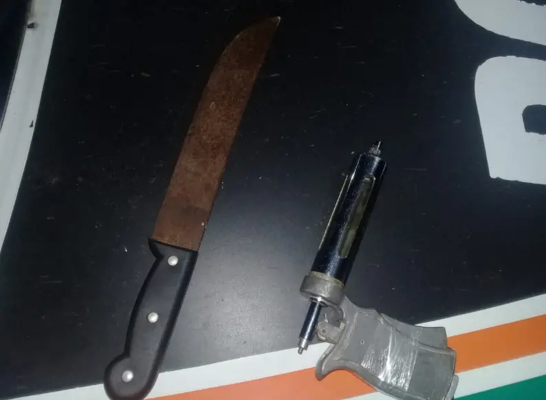 Dois casais foram presos. Todos já possuíam antecedentes criminais. Policiais apreenderam uma arma de fogo falsa e um facão