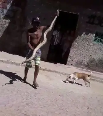 Réptil foi manuseado por populares nas ruas do bairro, segundo testemunha