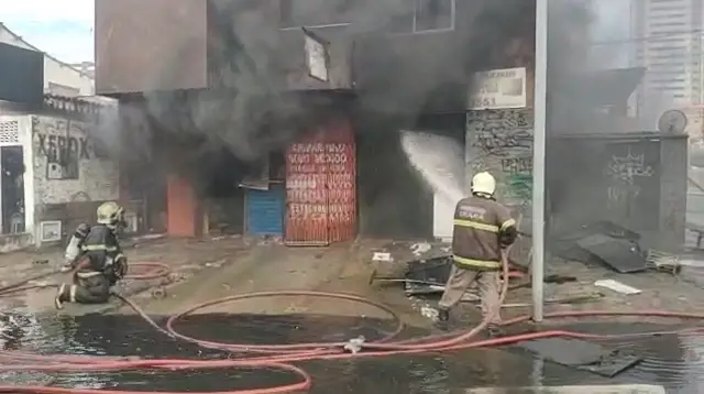 O fogo tomou conta de um dos compartimentos da loja, que ficou coberto por uma fumaça densa