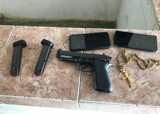 Policiais apreenderam uma pistola calibre 380, com numeração suprimida, dois carregadores e 37 munições de calibre ponto 380