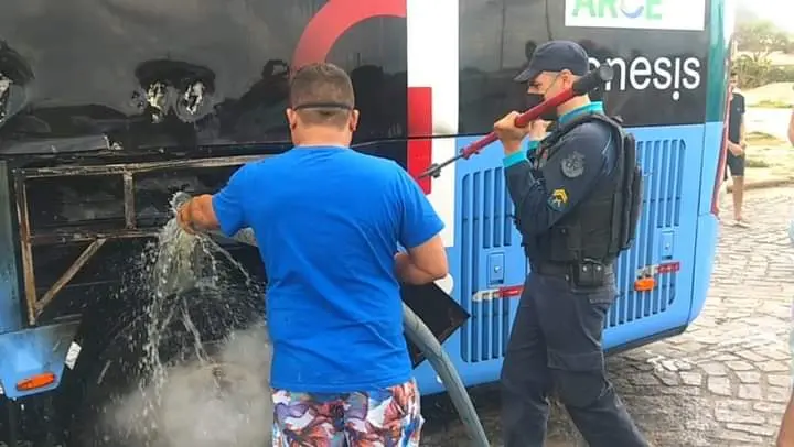 As informações foram confirmadas pela Polícia Militar. Fogo começou em pneu do veículo