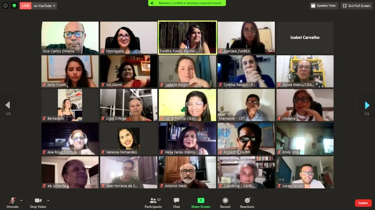 Realmente, o seminário está trabalhando a ideia de parcerias. Uma rede que possa potencializar “a capacidade de divulgar, apoiar, formar, direcionar recursos financeiros, selecionar, monitorar e avaliar projetos em todo o Brasil” com o engajamento de educadores e educadoras ambientais por todo o país. Os organizadores explicam que a Conexão FunBEA está em fase de formação. O encontro nacional, promovido agora pelas redes sociais, é um momento de abrir as portas para que os participantes possam construir a conexão com ideias de uma forma bem abrangente, reunindo diferentes experiências em razão das próprias diferenças regionais.