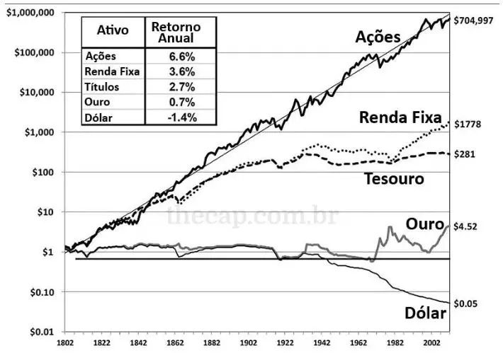 Apesar da variação nas cotações, e dos riscos, o investimento em ações costuma ser lucrativo para investidores de longo prazo. Como mostra Jeremy Siegel em seu livro: Investindo em ações no longo prazo, nenhum investimento supera o retorno de ações.