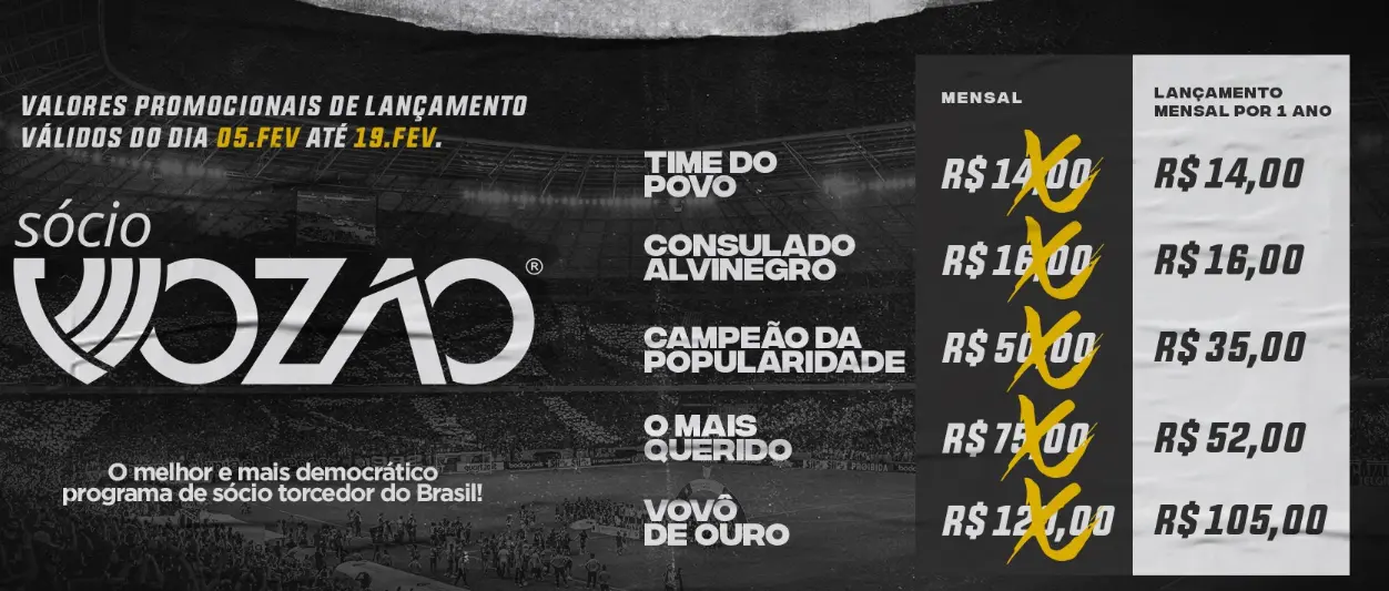 Valor: R$ 50,00 ao mês. Até o dia 19 de fevereiro, o torcedor que aderir vai pagar R$ 35,00;