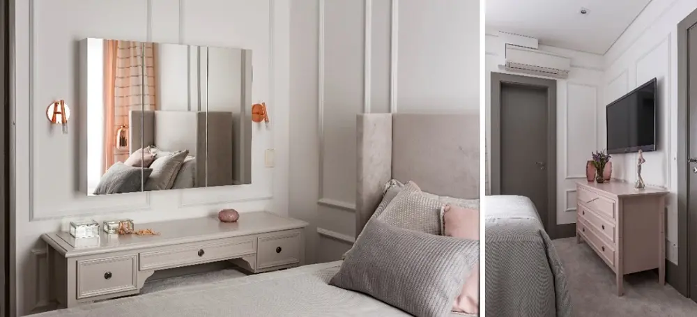 Embora tenha viés clássico, os boiseries podem ser aplicados em diversos estilos de decoração, em especial, a contemporânea, que mescla itens modernos e retrô na composição. E essa liberdade da mistura de estilos da atualidade faz com que a boiserie esteja tão presente nos projetos atuais.