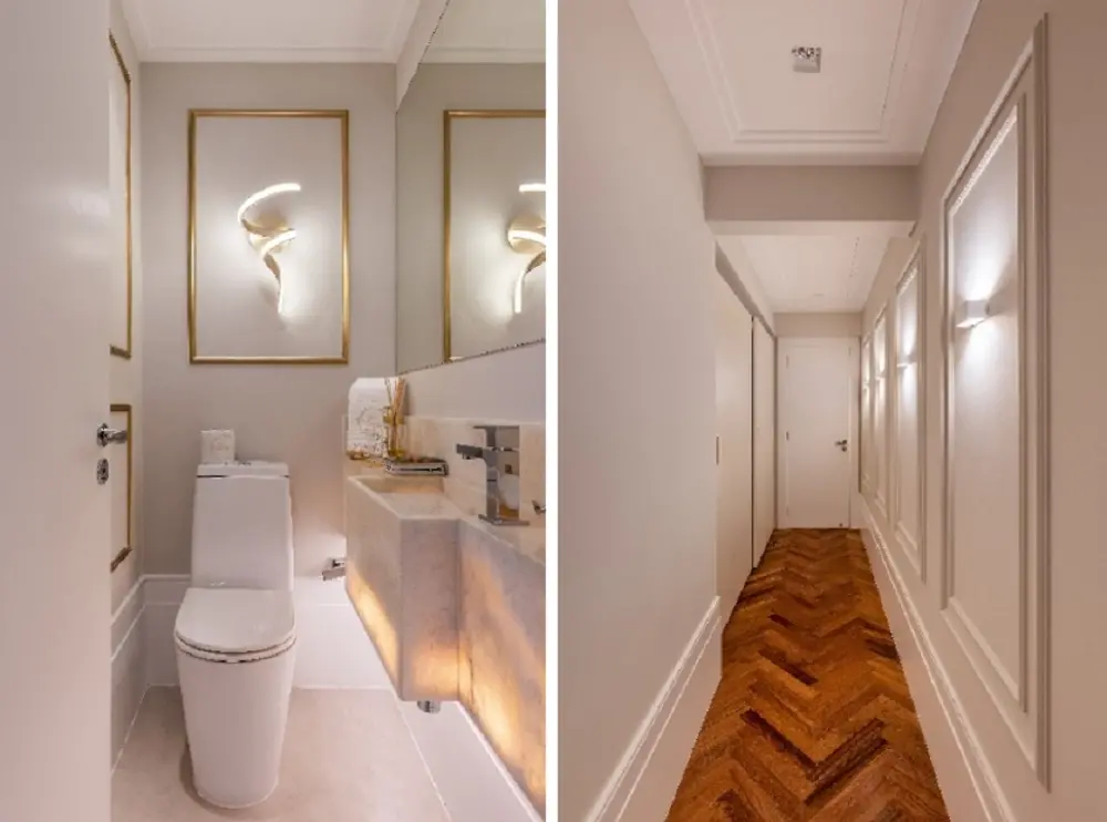 Já para quem quer um efeito ainda mais discreto, pode camuflar a boiserie pintando da mesma cor da parede. E quem for mais ousado, pode até pintar de uma cor de contraste. E aí, qual seu estilo preferido?