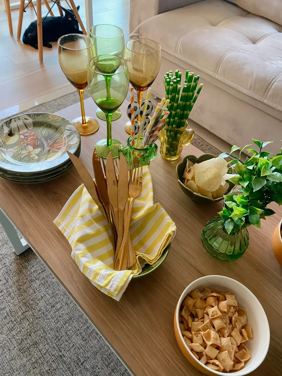 A premissa aqui é a mesma do que já comentei em outros textos: deixar tudo prático e à mão do convidado, para que você disponibilize tudo na mesa e também sente confortavelmente no sofá para também viver e curtir o momento, sem maiores preocupações com o receber.