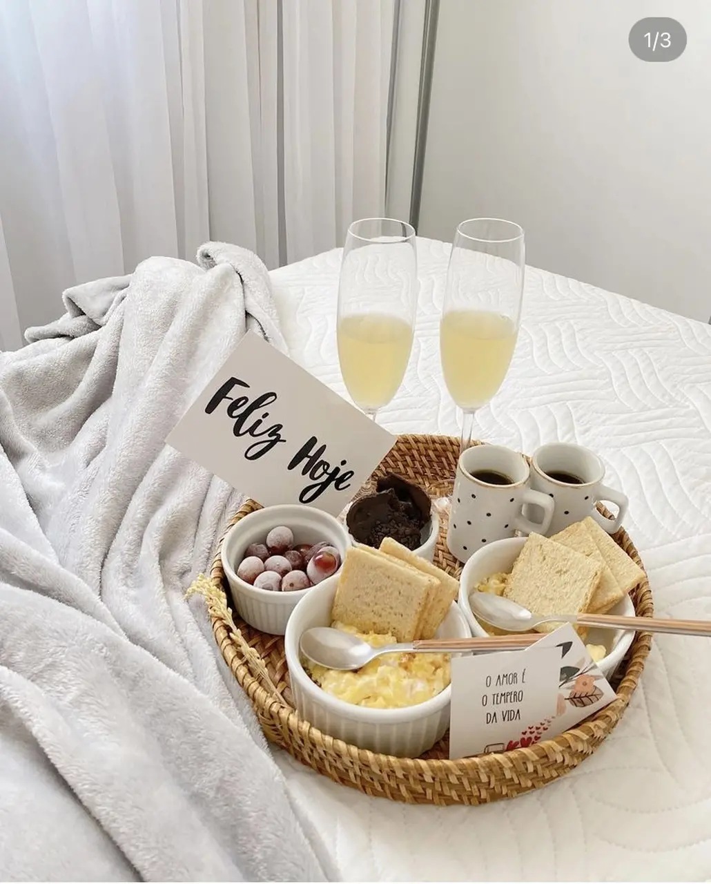 Independentemente da representatividade desse marco no calendário da sua vida, deixo aqui o abraço carinhoso e o lembrete de presentear com experiências quem amamos. A bandeja de café da manhã faz parte da rotina aqui em casa, tanto em dias comuns como nos festivos.