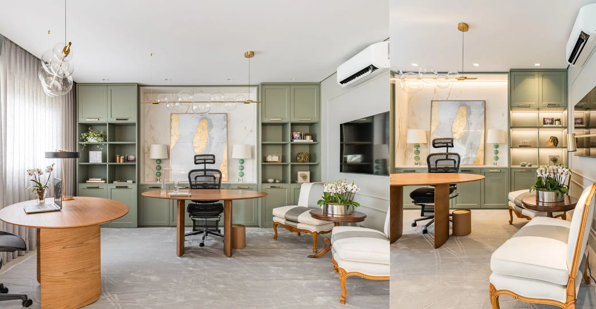 Seja para louças, livros, porta-retratos, lembranças de viagem, obras de arte, plantas e mais, as estantes funcionam de modo útil e sofisticado.