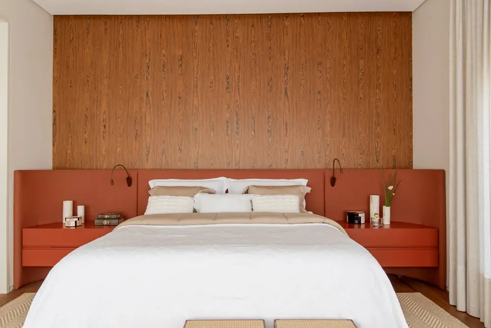 Uma das dúvidas frequentes é se é obrigatório usar peças iguais nas laterais de uma cama de casal. A resposta é que depende do estilo da decoração do quarto para definir essa composição. A assimetria está em alta, o que significa que pode usar em formatos diferentes, mas, de certa forma, elas precisam harmonizar.