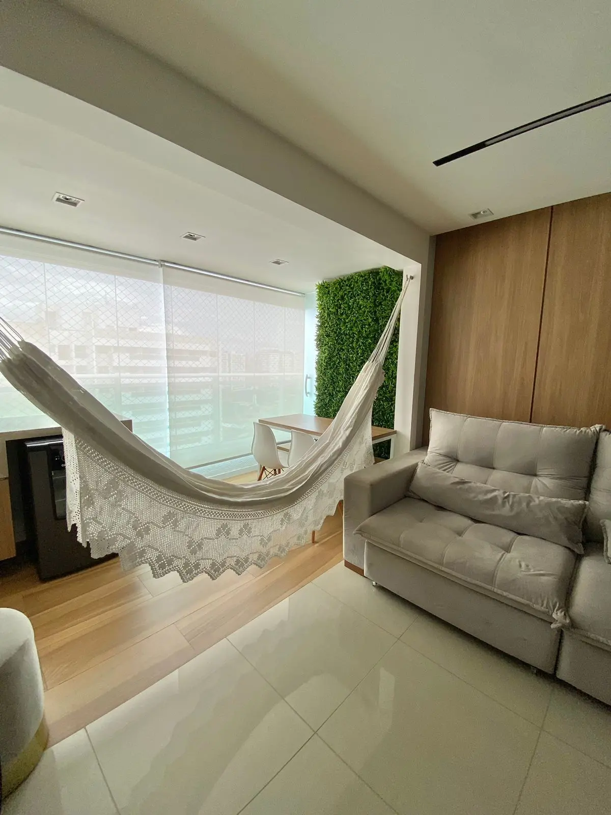 Claro, isso também é um gosto pessoal e, para quem curte a ideia, uma boa dica na hora de instalar é posicionar a rede voltada para a TV, pensando na funcionalidade dela no dia a dia. Imagina aí a possibilidade de assistir um filminho ou maratonar uma série aconchegado na rede? Bom demais!