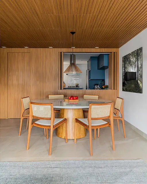 Confesso que até o momento de escrever essa coluna ainda não tinha reparado tanto nos tetos por aí. Talvez seu olhar também mude depois dessa leitura, viu? Que bom! Há sempre o que aprender e se inspirar por aqui. A quinta parede, popularmente conhecida como teto, tem efeito poderoso no resultado de um projeto. Se você deseja transmitir a sensação de acolhimento e excelente conforto termoacústico na sua casa, o toque amadeirado é uma aposta certeira.