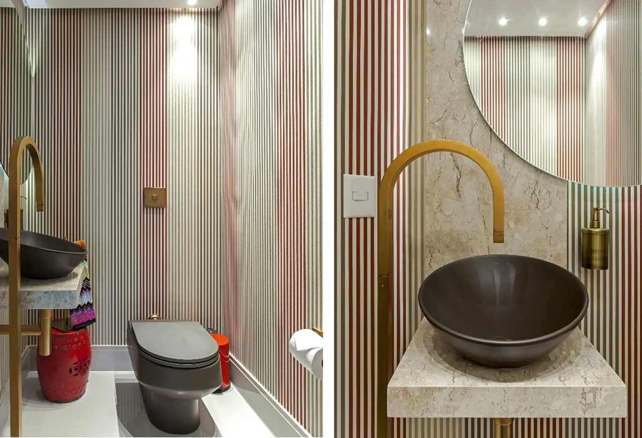 Assim como a torneira de teto, que não ocupa espaço nenhum na bancada. Essa, por sua vez, surpreende ainda mais os olhares. É ou não é curioso entrar em um ambiente e se deparar com uma torneira no teto? A gente faz mil perguntas sobre como ela foi parar ali, inclusive.