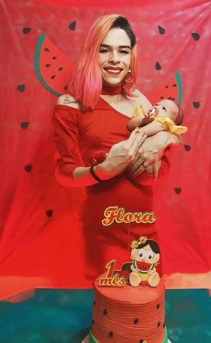 Nas redes sociais, Lara Nicole Medeiros Mota, de 27 anos, posta como se precisasse provar que existe. Mãe, travesti, funkeira e influenciadora digital, ela compartilha seu cotidiano na arte e na criação de Flora Liz, uma bebê de um mês, gestada no ventre do pai, seu marido. Ali, ela mostra que sua família é como todas as outras: repleta de amor e cheia de ânimo para comemorar cada mesversário da pequena.