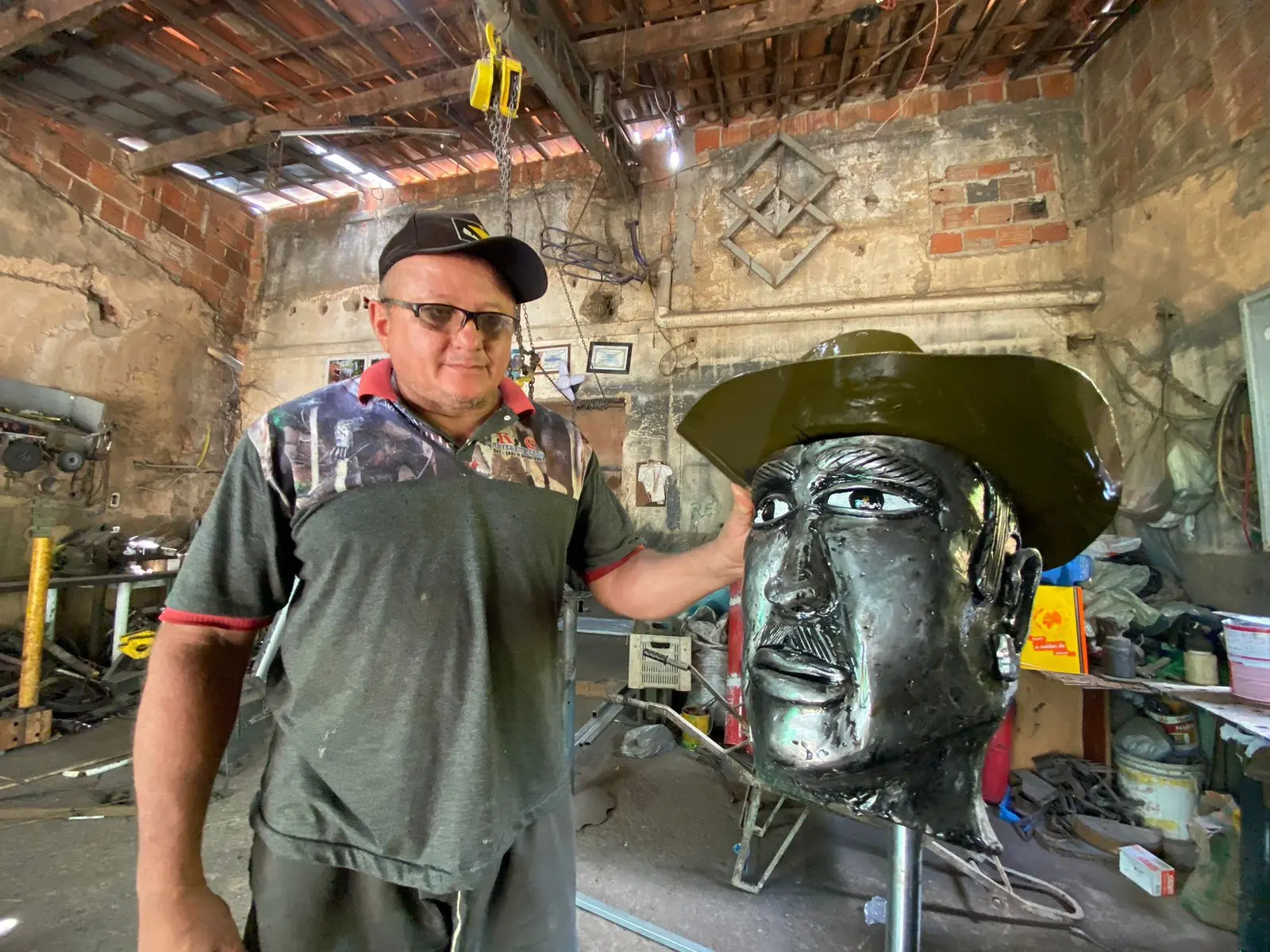 A mais de 400 quilômetros de Fortaleza, na cidade de Cedro, vive um serralheiro que virou artista. Com chapas de ferro e materiais automobilísticos, passa horas esculpindo um mundo fantástico de animais e personalidades gigantes