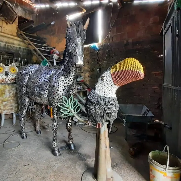 E foi assim que ser artista também virou ofício do serralheiro. Os empresários da cidade passaram a comprar as obras, feitas principalmente com correias e coroas de motos doadas pelos donos de oficina da cidade e dos arredores.