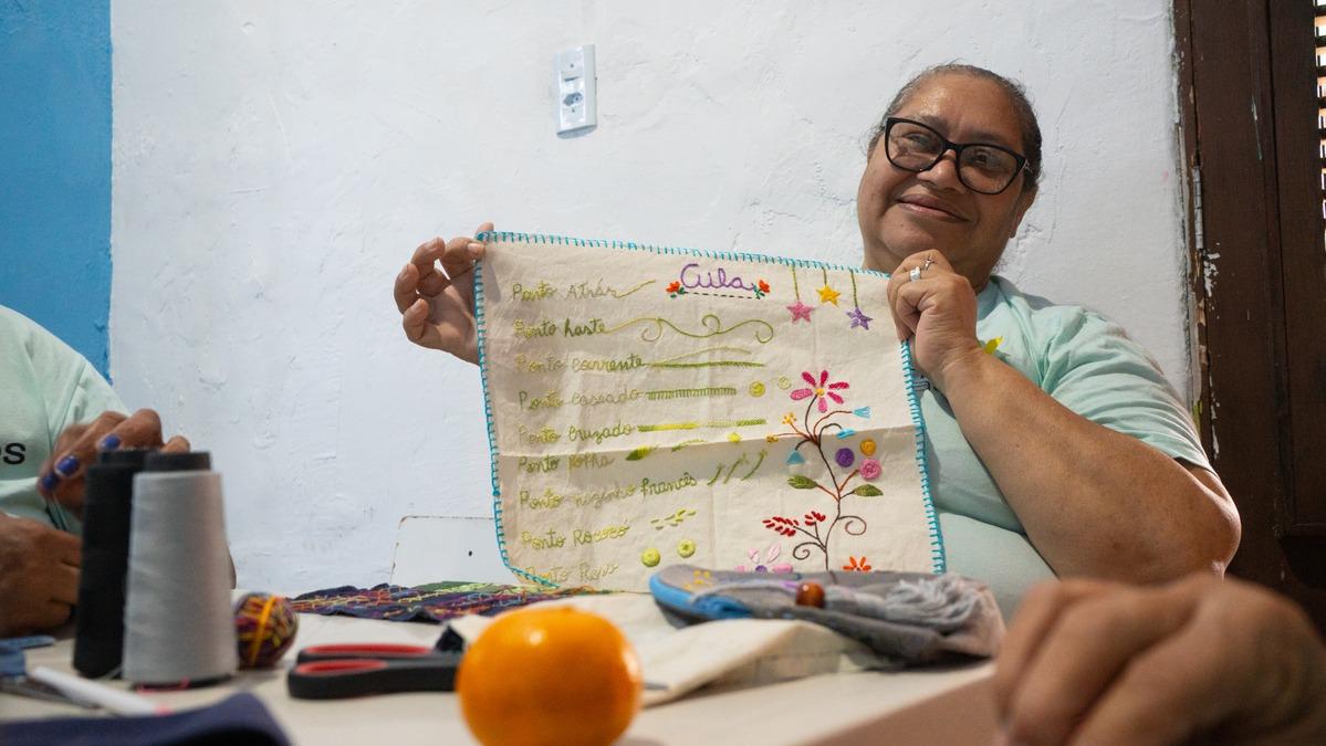 Aos 55 anos, artesã do Serviluz descobre no bordado uma nova fonte de renda e esperança