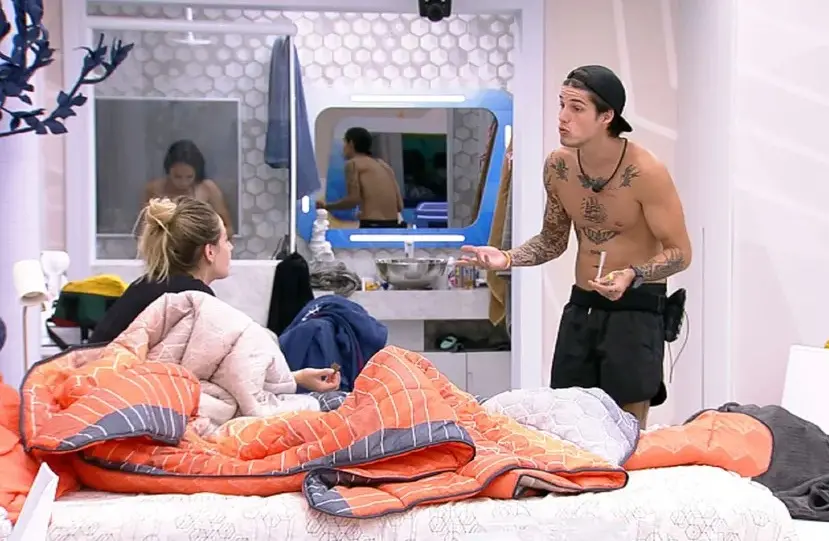 "Já vai levar umas cotoveladas na boca" é apenas uma delas, dita por Gabriel Tavares, em um diálogo tipo corriqueiro, em tom de brincadeira (?), a Bruna Griphao, com quem ele tem um relacionamento (?) na casa.