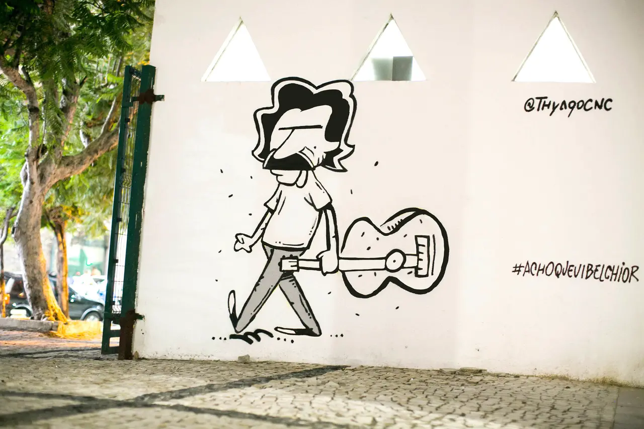 Nas paredes da cidade, o sumido dava às caras, nos graffitis de Thyagão, artista visual e chargista do Diário do Nordeste. No Instagram, a hashtag #achoquevibelchior compila os avistamentos de um despreocupado Belchior, passeando, de violão em punho. A brincadeira tira o peso de uma questão que, talvez, se leve a sério demais.