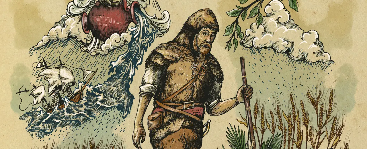 A verdade é que o Crusoé não tem lá muita sorte a bordo. Antes de ir parar na ilha deserta para sua longa estadia, ele havia estreado no mar com um naufrágio. Em sua segunda empreitada, é capturado por piratas e feito escravo.