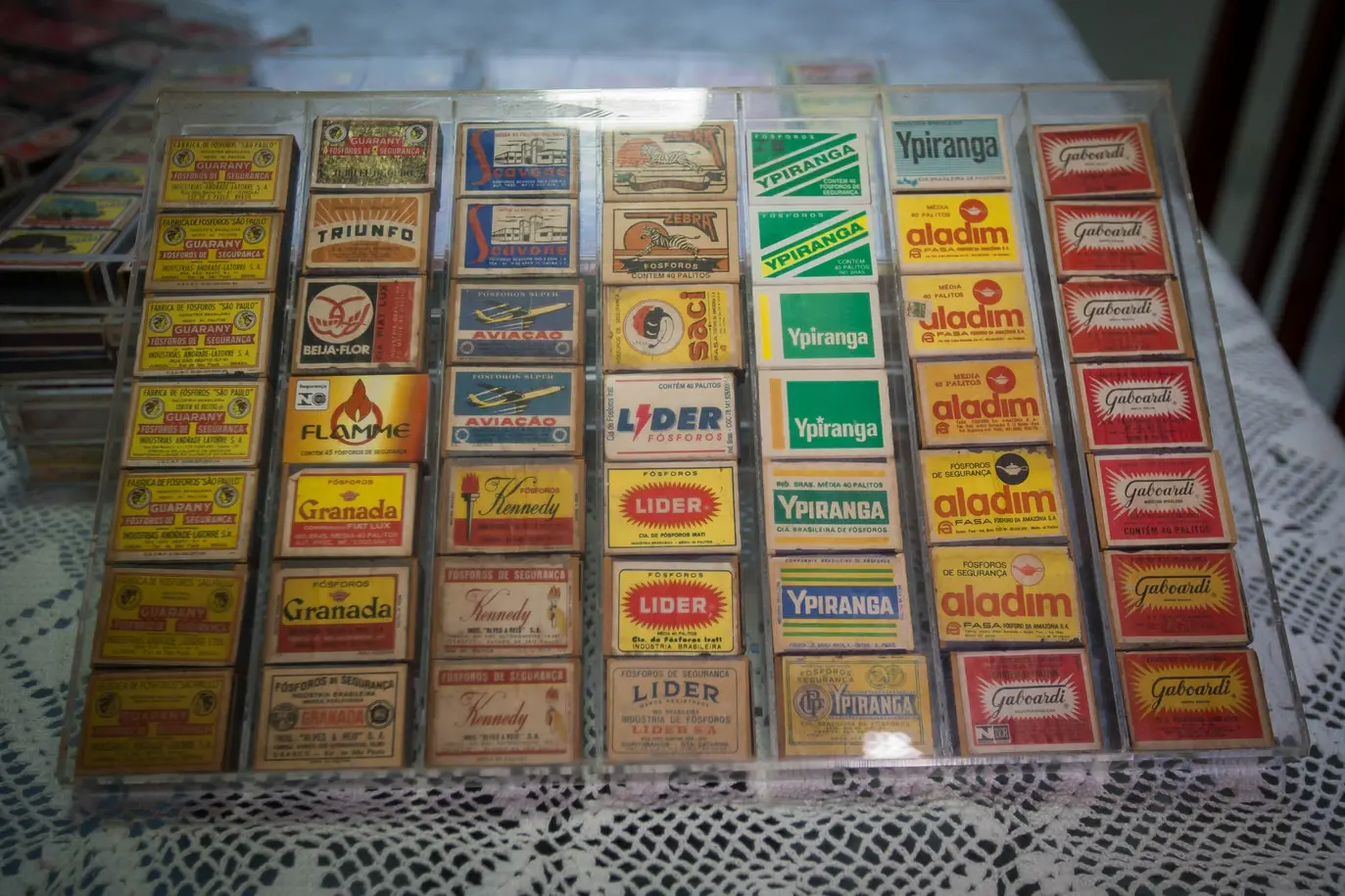 O carinho começa no trato com as peças. As caixas de fósforo sob a posse do engenheiro são guardadas em caixas de acrílico, a fim de preservar a autenticidade delas. Muitas são antigas, os rótulos desgastados pelo tempo, datadas das décadas de 1920 e 1930. Mas ainda existe o resquício do selo, os palitos originais. São detalhes que valorizam ainda mais a coleção.
