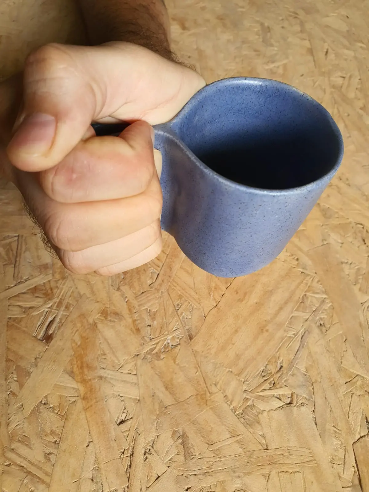 A peça tem anatomia simples, mas funcional: afasta o corpo da xícara à alça, fazendo com que quem tem pele fina ou, feito seu Newton, não consiga controlar o movimento das mãos, possa tomar qualquer tipo de bebida com maior facilidade, sem queimar os dedos ou deixar que derrame. “Dei de presente a ele no Dia dos Pais, em 2004. São 20 anos do invento”, diz.