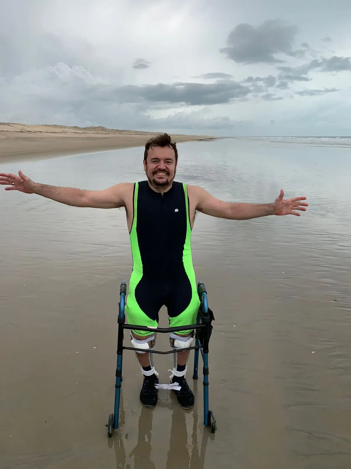 “Apesar da deficiência, continuei nadando muito bem. Inclusive, é minha melhor modalidade, a paranatação. Voltar ao mar após dois anos do atropelamento foi essencial porque eu ainda estava numa fase de aceitação, de ficar preocupado em como seria a minha vida depois da deficiência acidental… O mar trouxe isso: a lembrança de que eu continuava sendo uma pessoa, um atleta, alguém que ama a praia, a água”.