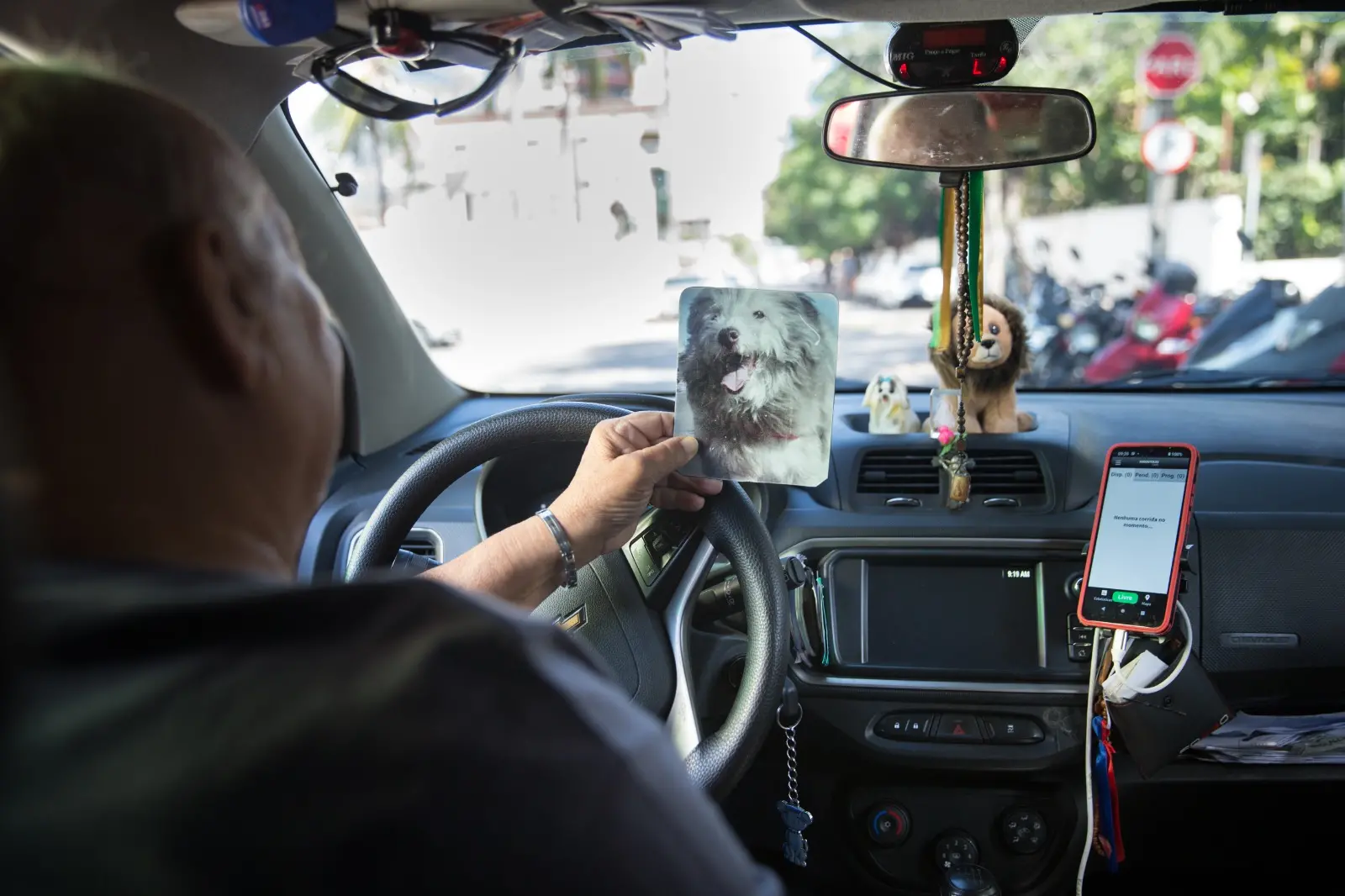 Meu táxi é cheio de fotos do meu cachorro porque, apesar de morto, ele permanece comigo