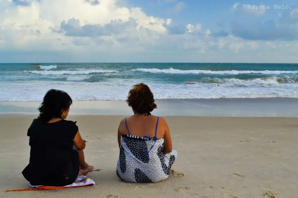 Chegaram não faz muito tempo, e logo aprontaram mergulho. Saíram depressa porque as ondas estão fortes e aproveitaram para fazer o que sabem de melhor: conversar. Olhar uma para outra. Dividir. São irmãs – Erilene mais nova, Lia referência. Irmãs-companheiras, amigas, ora mãe, ora filha uma da outra. Íntimas. Dali, passariam boas horas em frente ao oceano e depois rumariam para casa. O alpendre chama.