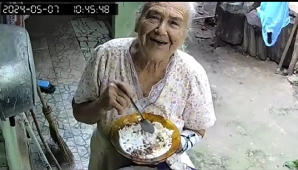 Neta usa câmera de segurança para conversar e registrar as novidades da avó que mora longe