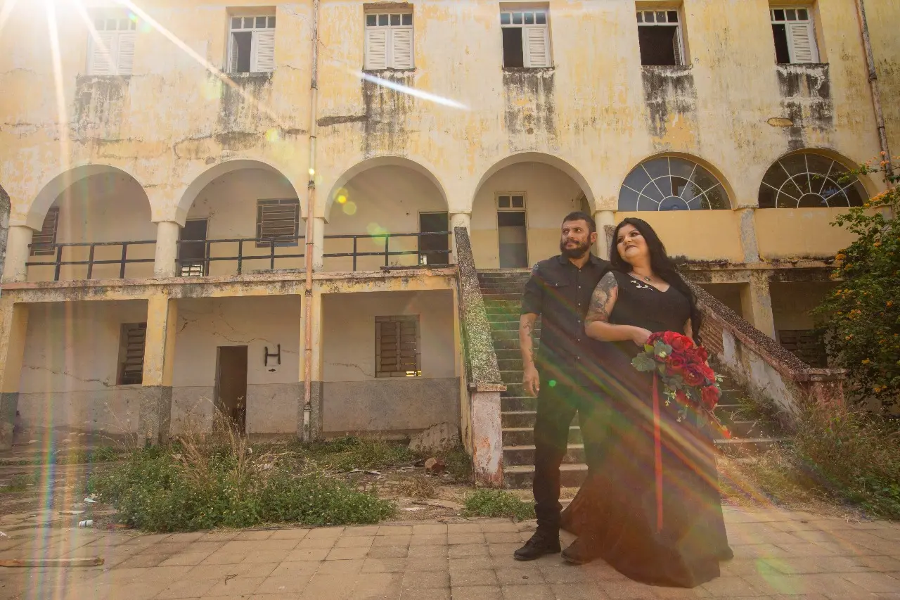 Carol e Haarllem sentem isso: é tudo fictício demais. Como se, na pasteurização dos registros, não ficasse evidente a singularidade do casal, a verdade deles. Assim, os dois escolheram um lugar no mínimo inusitado, mas bastante autêntico, para as fotos do casório: as ruínas do antigo Hospital Regional Manuel de Abreu, no Crato, Ceará.