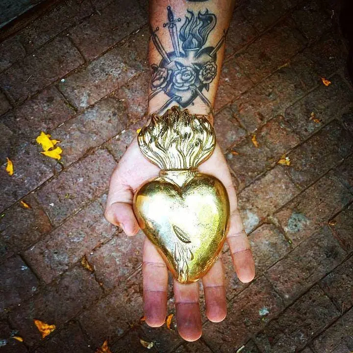 Peço para ver uma das peças – algo que seja especial para eles, e que esteja na casa onde moram. Carol diz que, de fato, o lar do casal é todo feito dessas miudezas. Então saca um coração de bronze e exibe, orgulhosa. Acharam de um artesão caririense. Representa bastante os dois. A solidez do artefato, o brilho e conservação dele.