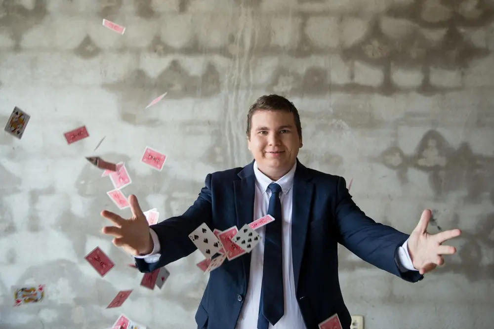 Talento que virou profissão três anos depois, não sem antes muita prática. O jovem ilusionista errava uma, errava duas, errava três vezes. Na quarta, se acertasse, já aprendia o método. Passou a arriscar. Fora das paredes do lar, iniciou apresentações em shows privados de mágica – primeiro para aqueles primeiros integrantes de uma plateia ainda novata, depois para mais gente. Fazendo e evoluindo, tijolo sobre tijolo.