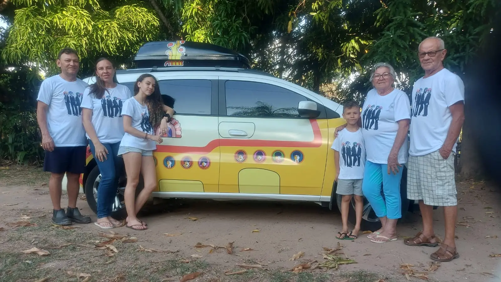 A trupe preparou uniformes específicos para a apresentação do eterno "Beatle". São camisetas brancas nas quais os garotos de Liverpool estão adornados com chapéu de cangaceiro. Uma formosura. Por outro lado, a própria decoração do automóvel promete despertar a atenção estradas afora, amarelo bonito reluzindo em meio ao sol e à lua.