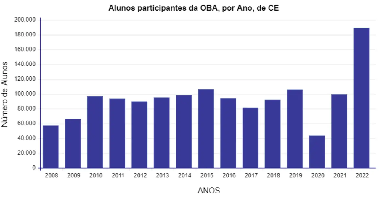O Ceará tem muitos entusiastas da Astronomia. Só no ano passado, cerca de 175 mil estudantes de escolas públicas e particulares, de zona rural e urbana, fizeram a Olimpíada Brasileira de Astronomia e Astronáutica (OBA). Só na Capital, 47 mil estudantes fizeram a olimpíada ano passado.