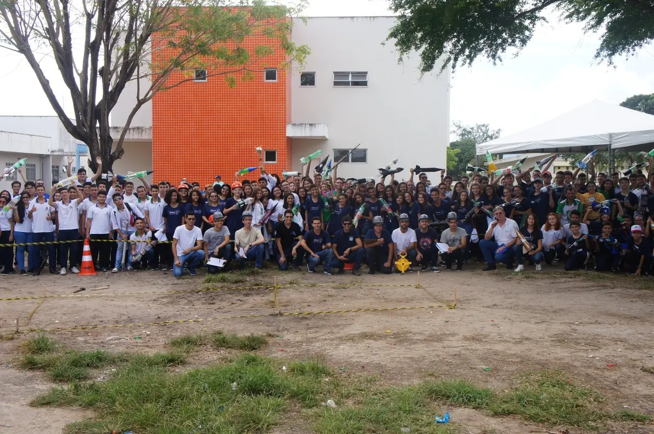 Os alunos do Ensino Fundamental e do Ensino Médio têm que construir foguetes de material reciclável e lançar o mais distante possível